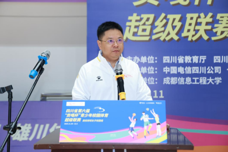 何晋在致欢迎辞时介绍了我校的基本情况,以及学校丰硕的体育育人成果。他表示“贡嘎杯”作为本省青少年校园体育的最高级别赛事,蕴含着体教融合的深刻内涵。它不仅是激励青少年超越自我、追求卓越的竞技平台,也是展现高校体育育人成效的重要窗口,更是弘扬体育精神、凝聚青春力量的文化盛事。我校必定通力协作、密切配合,全力做好赛事服务保障,为赛事营造一个安全、公平、有序、温馨的竞赛环境。他期望参赛队赛出风格、赛出水平,取得优异成绩,大赛取得圆满成功。