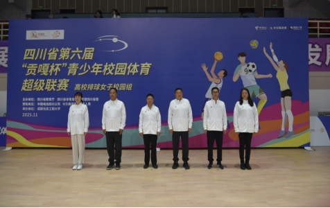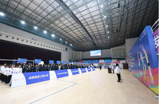 【本网讯】11月29日上午由四川省教育厅、四川省体育局、共青团四川省委主办,四川省大学生体育协会、四川省排球协会执行,成都信息工程大学承办的四川省第六届“贡嘎杯”青少年校园体育超级联赛(排球高校女子校园组)开幕式在学校体育馆举行。学校副校长何晋、体育部党委书记程艺、赛区管委会主任兼裁判委员王志杰、赛区纪律监督王世伟、四川省大学生体育协会竞训部排球项目负责人沈佳炘、赛区技术委员邹勤、全体裁判员以及各参赛单位领队、教练和运动员出席仪式。